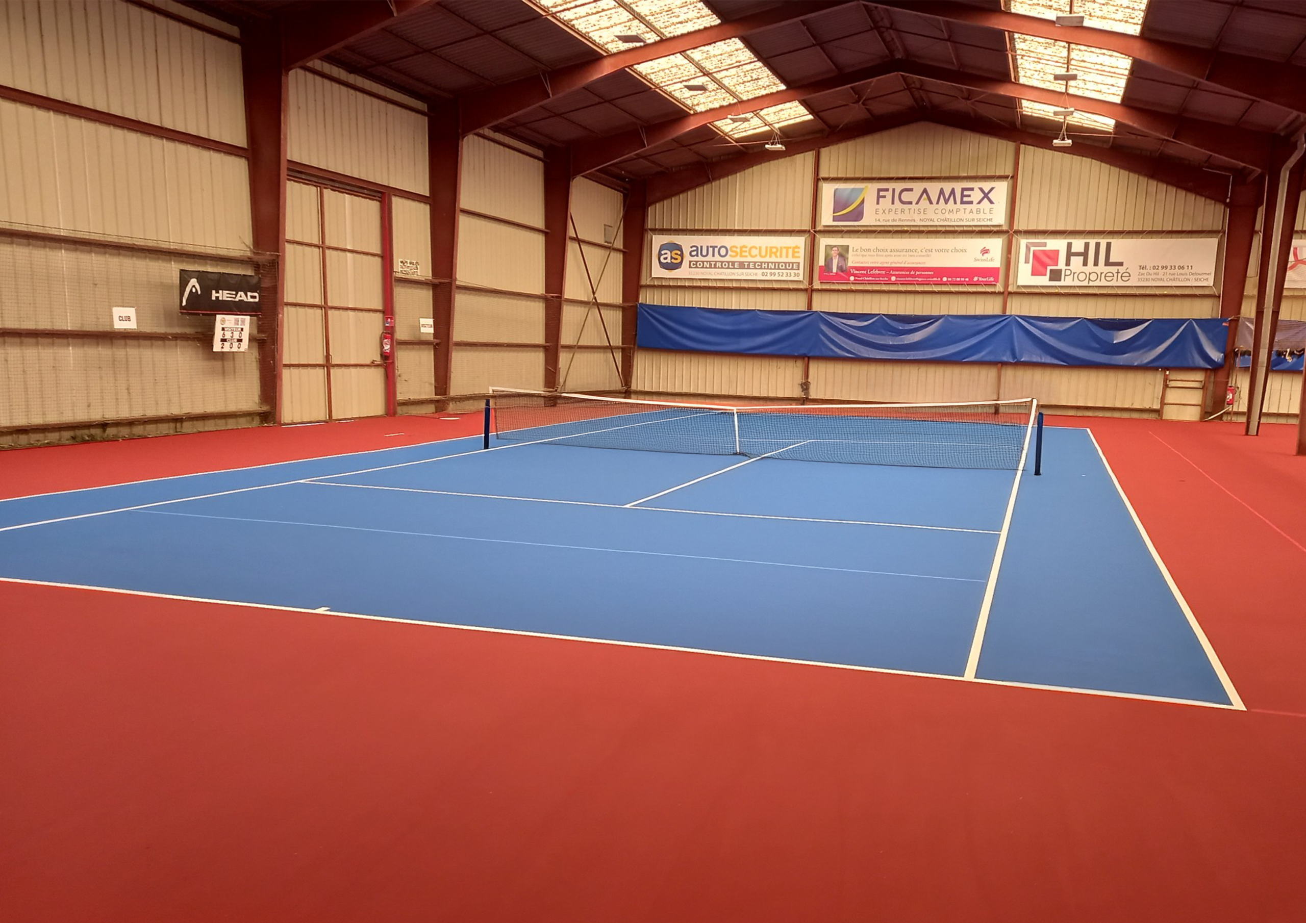 Salle proposant deux courts de tennis en béton, disposant d’un éclairage et de 2 vestiaires avec douches. Cet équipement est mis à disposition des particuliers ainsi que de l’UNSC Tennis Noyal-Châtillon-sur-Seiche.Surface : 1332.00 m².