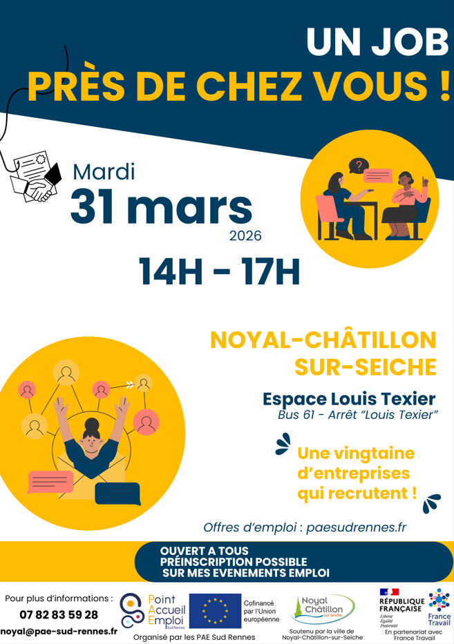 Forum organisé par les PAE sud Rennes , soutenu par la ville de noyal , en partenariat avec France Travail et We Ker.