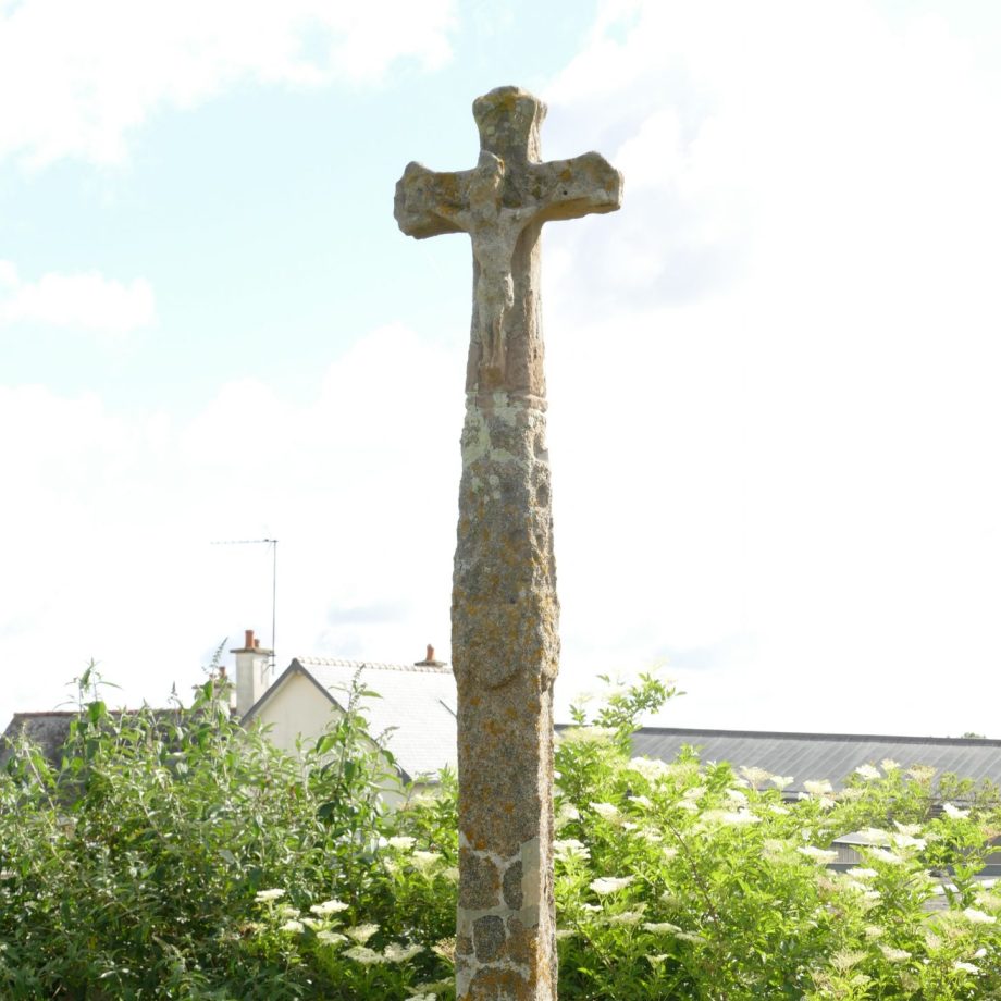 Cette croix provient vraisemblablement de Lancé, on pouvait y lire le blason de la famille Gouicquet, propriétaire de Lancé au XVIIème siècle.